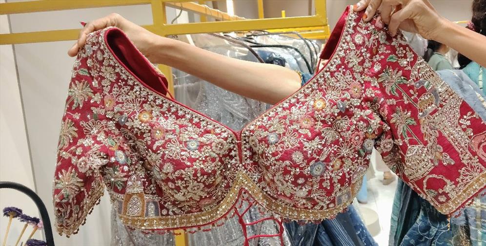265 red temple choli